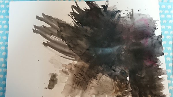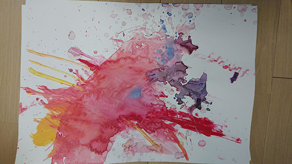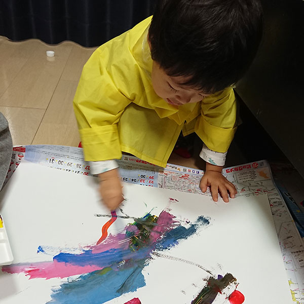 いろいろばぁを使って、絵具遊び